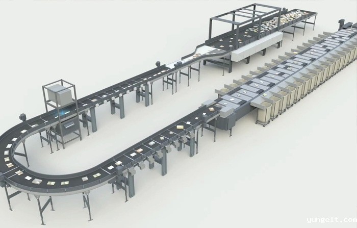 输送带分拣机:这是基本的分拣机设备类型,通过输送带将包裹运送至不同的分拣区域或出口。输送带可以是水平的或倾斜的,根据分拣规则将包裹引导到相应的位置。