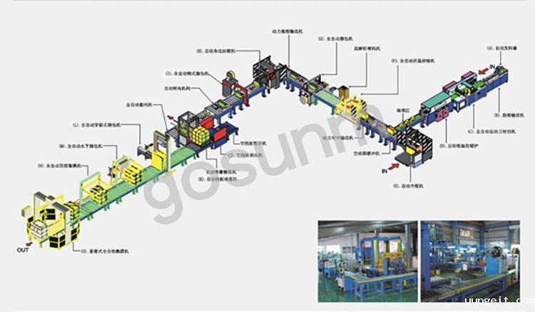 所用到的产品包括:自动发料、自动封切、自动收缩、自动开箱机、自动装箱机、称重机、实时打印贴标机、全自动折盖封箱机、全自动四角边封箱机、工字型捆扎机、码垛系统、全自动栈板打包机、全自动穿剑式捆包机、全自动水平式捆扎机、自动顶部覆膜机、全自动在线式缠绕机,其中机械可配套流水线使用,亦可单机作业。
