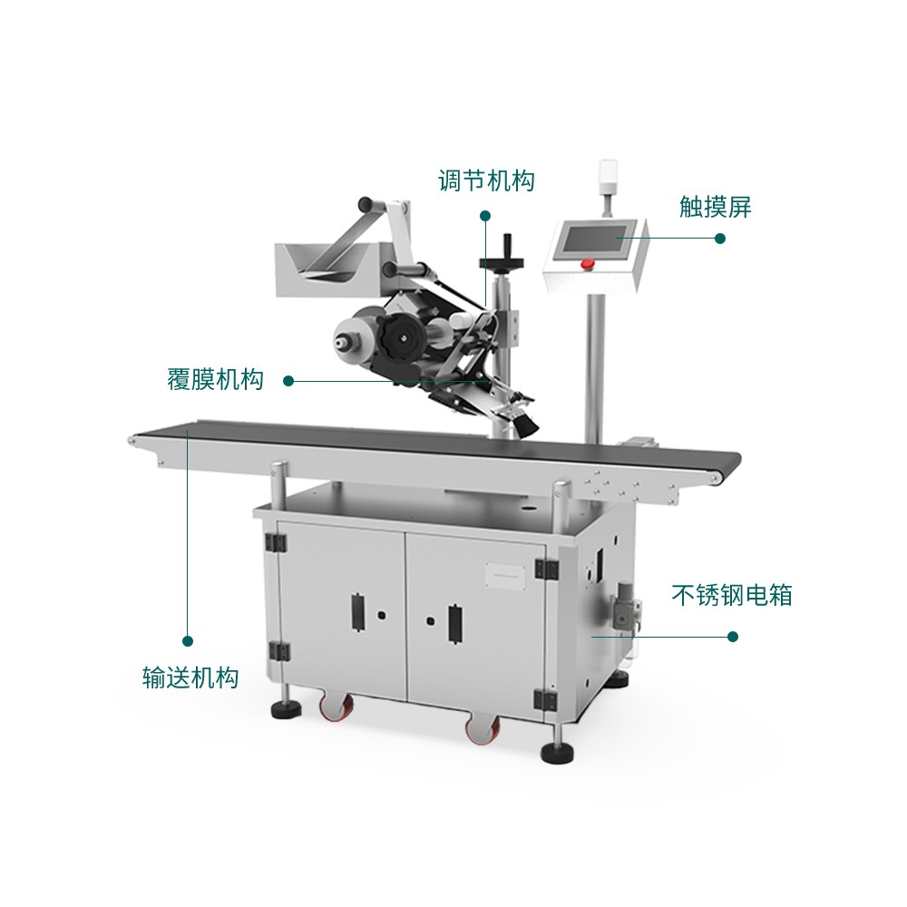 本机属于平面贴标机系列,适用于在各种物品的上平面贴标签或不干胶膜,如书本、文件夹、盒子、纸箱等,更换覆标机构可适用于不平整表面贴标,广泛应用于大件产品的平面贴标,规格范围大的平面类物体贴标。